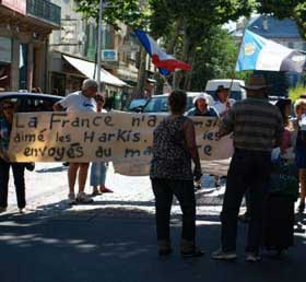 Tout est néanmoins rapidement rentré dans l’ordre et, après quelques explications au poste de gendarmerie du péage, les manifestants ont rejoint le centre-ville où ils ont défilé de République à Mandarous aux cris de "Harkis, Français par le sang versé", " De Gaulle assassin " et encore " Sarkozy voyou de la République "...