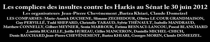 Monsieur le Président du Sénat nous tenions, et les Harkis avec nous, à vous exprimer notre consternation et notre colère devant ces actes d’une gravité extrême qui se sont déroulés dans une enceinte officielle de la République dans l’indifférence générale et l’impunité la plus grande. A minima, en votre qualité de Président du Sénat, il vous appartenait de signaler ces faits délictueux au Ministère public afin que des poursuites judiciaires soient engagées... Encore une fois, nous constatons que, malgré les lois, comme dans le cas FRECHE, les insultes et injures à l’égard des Harkis peuvent être proférées en toute impunité y compris dans les lieux où sont votées ces mêmes lois censées les protéger.