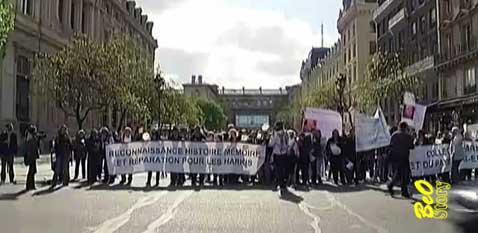 Les protestataires, des femmes accompagnées d’enfants, des jeunes, des vieux harkis couverts de médailles, rassemblés devant le Palais de justice sur l’Ile de la cité, ont répondu à l’appel d’une trentaine d’organisations de harkis et des associations d’extrême gauche, issues de différentes régions de l’Hexagone.