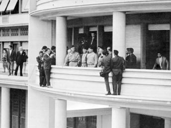 Les généraux Jouhaud, Salan, Challe et Zeller au balcon de la délégation générale à Alger, le 24 avril