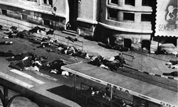 Le 26 mars, rue d'Isly, une manifestation interdite mais pacifique se dirigeant vers le quartier de Bab-el-Oued se heurte à un barrage de tirailleurs.