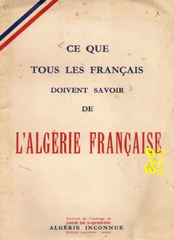 Il faut savoir : que le pays qui se nomme aujourd'hui l'Algérie n'était pas en 1830, à l'arrivée des Français, un Etat comme l'étaient le Maroc et la Tunisie ; que ce pays se composait alors d'un ensemble de tribus sans aucun lien entre elles ; que ces tribus étaient même animées les unes envers les autres d'une hostilité que l'occupant turc avait pris bien soin d'entretenir, de crainte qu'une même haine pût les unir contre lui ; que le sentiment de patrie était, chez ces populations, totalement ignoré ; que ce pays n'avait même pas de nom.
