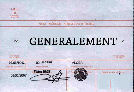| Emotion dans la communauté des Rapatriés d'Algérie de Saint-Cyr. Un mllier de cartes d'électeurs destinées, à des personnes nées en Algérie avant l'indépendance, ont été imprimées avec la mention • " étranger " |