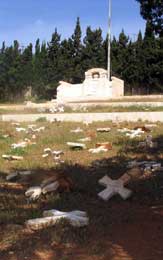 - 1297 dépouilles profanées dans leurs sépultures, dalles arrachées, ossements mis à jour, toutes les croix chrétiennes détruites.