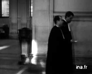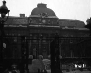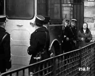 VG gendarmes amenant femme - on monte dans le fourgon cellulaire - cars de gendarmes se dirigeant vers le palais - VG plongeante cour du palais avec forces d'ordre - avocats en robe dans salle pas perdus. |