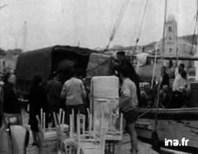- ITW du patron du chalutier MANUEL CAMPIO qui a, lui aussi, ramené des rapatriés. ITW d'une passagère. Les chalutiers arrivés d'ALGERIE, les bateaux de pêche, des marins recousent des filets. ITW d'un marin. Sur le bateau, nettoyage - ITW d'un Rapatrié : difficulté de logement. DP chalutiers. |