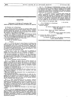 Ordonnance n° 62-1106 du 19 septembre 1962