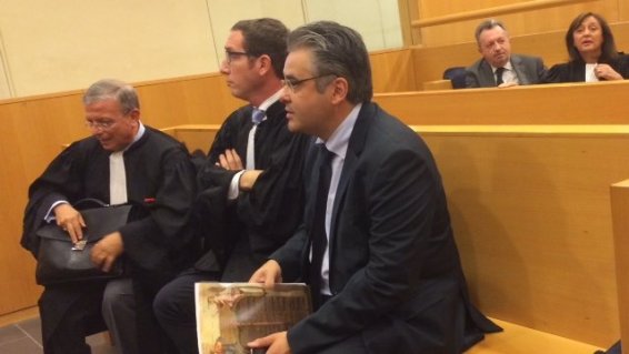 Le député PS Jean David Ciot au tribunal correctionnel de Marseille lundi dernier le 13 octobre 2014 avec Mémé Guerini .