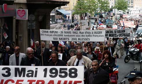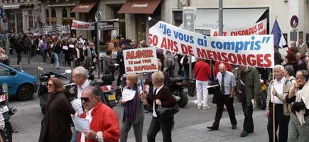 Environ 1.000 Rapatriés d'Algérie ont manifesté mardi 13 mai 2008 à Marseille pour réclamer " la reconnaissance officielle par la France de sa responsabilité dans les drames et souffrances" que cette population a subie.