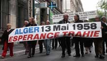 Depuis le Vieux-Port de Marseille, les manifestants (Rapatriés d'Algérie, Harkis, fils de Harkis et anciens combattants d'Algérie) ont défilé en portant des banderoles sur lesquelles on pouvait lire: "Alger. 13 mai 1958. Espérance trahie" ou encore " Je vous ai compris: 50 ans de mensonges".