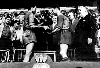 A quatre ans, il perdit son père et fut obligé, son certificat d'études obtenu, de quitter la communale pour, à l'exemple de ses trois sœurs et de ses deux frères, aider sa maman à faire tourner la petite entreprise familiale. Dès l'âge de douze ans, il se mit à jouer au foot-ball sous les couleurs rouge et bleu du F.C. Rochambeau, modeste club de Bab-el-Oued. En 1937, il rallia l'ASSE dans le quartier voisin de Saint-Eugène. Sous la houlette d'un entraîneur avisé, Paul Baron, et côtoyant De Villeneuve, Stepanof, Pierre Izzo, ou le remarquable meneur de jeu Charly Sas, le jeune Marcel progressa très vite. Grand, costaud, il fut appelé, à 17 ans, en Sélection d'Alger. En 1942, mobilisé, il endossa l'uniforme bleu des aviateurs cantonnés à La Redoute mais put continuer à évoluer le dimanche avec l'ASSE. Il fut Champion d'Alger en 1943 et 1944. Dans l'équipe de l'Aviation, Salva retrouva son ami de l'ASSE, Pierre Landi, son aîné Lucien Jasseron et Jean-Claude Samuel du RUA, Pierre Ponsetti du Red Star d'Alger ainsi que l'Oranais André Philippot. Cette brillante phalange permit à l'équipe militaire française de s'illustrer lors des Jeux Inter-Alliés, organisés à Naples en 1944. Quelques mois plus tard, ils étaient à Paris, attendant d'être démobilisés. Cette présence fut une aubaine pour Paul Baron qui venait d'arriver dans la capitale pour entraîner le Racing. Le club « Ciel et Blanc » était alors en mauvaise posture : avant dernier du Championnat, à mi-parcours, mais le renfort inespéré venu d'Algérie permit un retournement spectaculaire. Le Racing ne perdit plus un match, termina en sixième position mais surtout remporta la Coupe de France ! Ce prestigieux trophée, obtenu le 6 mai 1945, aux dépens de Lille, battu 3 à 0, sera suivi, quelques mois plus tard, d'une autre grande joie sportive pour Marcel. Ses remarquables prestations sans cesse renouvelées avec le Racing n'avaient pas échappées à l'Ïil du sélectionneur et il fit sa première apparition dans l'Equipe de France. Pour ce match contre l'Autriche, devant 55 000 spectateurs entassés au Stade du Prater de Vienne, Salva avait à ses côtés l'Oranais Jean Bastien, son ami Jean-Claude Samuel né à Guelma mais également la « perle noire » : Larbi Ben Barek. Marcel avait si bien tenu sa place que cinq autres sélections avec le coq gaulois sur le maillot suivirent. Encore « amateur », il semblait promis au plus bel avenir en devenant « pro » mais il décida de rentrer en Algérie. Jeune marié, Salva qui considérait la carrière sportive aléatoire et éphémère, préféra rejoindre ses frères qui avaient donné de l'ampleur à l'entreprise familiale. Ce départ lui causa quelques ennuis avec la Fédération Française car les joueurs de cette époque étaient liés avec leur club jusqu'à la fin de leur carrière sportive. En remboursant au Racing quelques primes pourtant bien méritées, il put cependant revêtir à nouveau le maillot rayé rouge et blanc de l'ASSE. Les mois passèrent ... A Paris, on n'avait pas oublié, ni remplacé Marcel du côté du Parc des Princes et du Stade de Colombes. Les sollicitations répétées finirent par le décider. L'entreprise algérienne était sur de bons rails, et il pouvait donc se lancer dans cette aventure « pro ». Cette période, de fin 1947 à l'été 1952 valut à Salva une seconde Coupe de France, remportée en 1949. L'année suivante, il échoua en finale contre le Stade de Reims. Sept sélections internationales s'ajoutèrent à son palmarès et celui qui lui succéda, Roger Marche entra dans la légende avec 45 matchs en Equipe de France. Auréolé de ses succès métropolitains au plus haut niveau, Marcel était attendu comme le Messie par les sportifs algérois. Où allait-il évoluer ? Quel club allait bénéficier de son expérience et de son talent ? Au grand dam des supporters de l'ASSE, il s'engagea sous les couleurs rouge et bleu du Gallia Sports d'Alger (le G.S.A.) qui évoluait au stade Municipal. A la tête de ses « Coqs », Capitaine et entraîneur-joueur, Marcel remporta 3 championnats de la ligue d'Alger en 1954, 1955 et 1958 et gagna la Coupe d'Algérie en 1958. Gagneur et meneur d'hommes hors pair, Salva était également habile tacticien ; tout en galvanisant son équipe, il pouvait à tout moment retourner une situation compromise par d'intelligentes consignes de jeu.A l'orée de la saison 1959, il décida de « laisser la place aux jeunes » tout en continuant à diriger le jeu et les entraînements du Gallia. La passion du foot était toujours vivace chez lui 25 ans après ses débuts. En 1962, la grande encyclopédie du foot-ball rendait hommage au très grand joueur qui s'était illustré sur les grands stades d'Europe, de Métropole et d'Afrique du Nord : « Sportif racé, aux placement et jeu de tête excellents, aux interventions sobres, efficaces et très intelligentes ». 1962 justement ... une année douloureuse pour notre communauté et que Marcel avait si mal vécue. Viscéralement attaché à sa terre natale et à ses racines algéroises, il ne put jamais se consoler de ce départ d'Algérie Française vécu comme un déchirement.