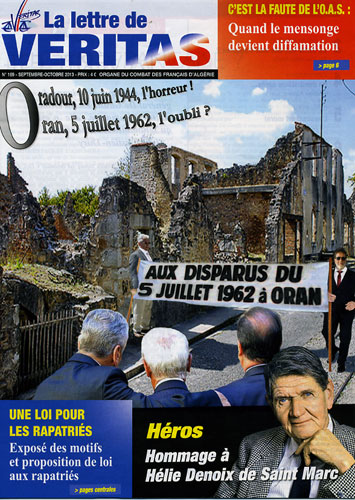 Sommes-nous les seuls à rendre hommage à ceux qui ont combattu contre tant d'injustice ? Beaucoup de voix s'élèvent et se heurtent à « l'omerta » du politiquement correct. Qu'au moins la conclusion de ce commentaire soit un hommage aux vivants et aux morts qu'on oublie volontairement car, c'est l'évidence même, nos hommes politiques ont honte de reconnaître publiquement que les Français, qui se sont levés contre l'abandon d'une partie du territoire national et des populations qui la peuplait, ont été écrasés par une force supérieure, sans foi ni loi, qui affirmait représenter la France. Ceux-là ont peut-être perdu la guerre, mais ils ont bien été les seuls à conserver L'HONNEUR. ■ |
