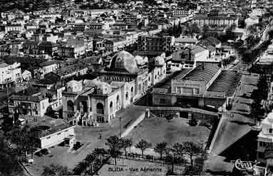À son apogée, avant la catastrophe de 1962, Blida est la capitale de la Mitidja avec 70 000 habitants. Son climat sain bien aéré au pied de l'Atlas Tellien, attire les visiteurs algérois. Les "Autocars blidéens" rouge vif stationnés dans d'immenses hangars, puis la micheline desservent le centre ville. Projetée dès 1920, réalisée en 1947, elle fonctionna jusqu'au 30 mai 1959 : le trajet était devenu dangereux à cause des embuscades, malgré la présence d'un wagon de marchandise aménagé en poste de tir pour une escouade des Unités territoriales. Au centre ville, sur la place d'armes, l'ineffable kiosque à musique de style mauresque trône sous son immense palmier et au milieu de la double file de platanes. |