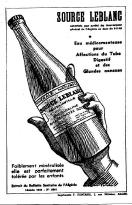 Un colon acharné au travail, l'un de ceux qui illustrent le mieux l'énergie impossible à décourager de ces pionniers du temps de la pacification, a trouvé une source à plus de 80 m sous terre : la source de Gilbert Leblanc a fini par donner son nom à la meilleure eau minérale d'Algérie, avec des qualités dignes de celles de Vichy. |
