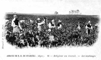 L’activité croissant, le Domaine commence à intriguer. Indigènes et colons viennent observer et imiter ces pionniers d’un type particulier. En 1853, la Trappe de Staouéli obtient un premier prix à l’Exposition Agricole d’Alger. La même année, un décret impérial confère au R.P. François Régis la croix de la Légion d’Honneur pour avoir « contribué au développement de la Colonie Algérienne par la fondation d’un établissement agricole considéré comme un modèle ». La notoriété de l’exploitation attire en effet les esprits les plus éclairés de l’époque. Savants et agronomes, hommes politiques, colons viennent y puiser des méthodes et des conseils en matière d’organisation, de savoir-faire cultural et d’expérimentations. Boucher de Perthes, grand préhistorien français, s’y rend en 1855. Napoléon III et Eugénie y font halte en 1865. Tous en reviennent impressionnés. « J’admire de belles plantations de citronniers, écrit Boucher de Perthes. Je visite les étables, non moins propres que nos écuries de luxe ; les vaches et les bœufs y sont d’un embonpoint qui contraste avec la maigreur des maîtres. Un matérialiste, forcé de faire ici un choix, préfèrerait au régime des frères celui de leurs bestiaux. » 1880 marque sans doute le plein épanouissement de l’exploitation. Avec ses 120 religieux, 60 domestiques arabes, 80 ouvriers espagnols et 70 condamnés militaires, le monastère est une cité qui grouille d’habitants et d’activités. Aux nombreux ateliers opérationnels sont venus s’adjoindre un atelier de photographie inauguré en 1878 et un laboratoire d’analyses pour les vins et les parfums. Les expériences en matière hydraulique ont permis de capter une vingtaine de sources. Les divers essais d’engrais naturels ont démontré les vertus fertilisantes des matières organiques. Le cheptel lui-même a fait l’objet de nombreux tâtonnements. Importées en Algérie, les races bovines européennes, peu adaptées au climat méditerranéen, ont été croisées avec les races locales plus résistantes pour en améliorer les performances. Mais la perte de vitesse s’amorce… Les années 1890-1900 sont celles du ralentissement. Les activités de recherche s’essoufflent. Le matériel vieillit, l’enthousiasme s’étiole. Le contexte porteur n’est plus là. À quelques années de la proclamation de séparation de l’Église et de l’État, l’hostilité envers les religieux devient perceptible. « Bouffer du curé » est signe d’émancipation. La crise agricole qui sévit n’arrange rien. Il faut réemprunter pour couvrir les frais des désastres viticoles. Les lois antireligieuses de 1904 finissent de balayer les dernières hésitations. Soixante ans après sa création, le Domaine de la Trappe est mis en vente. |