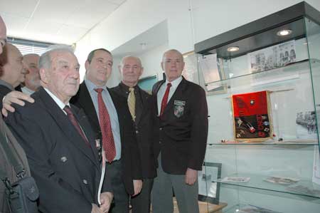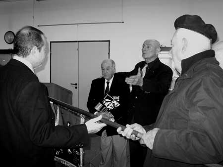 Remise du fanion de l'unité territoriale du 11è BUT le 24 janvier 2007 de gauche à droite Robert Saucourt - Marcel Ronda - Serge Jourdes - Albert Saupagna |