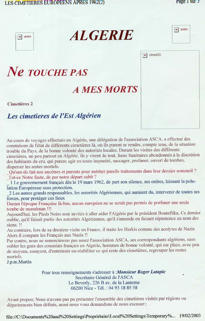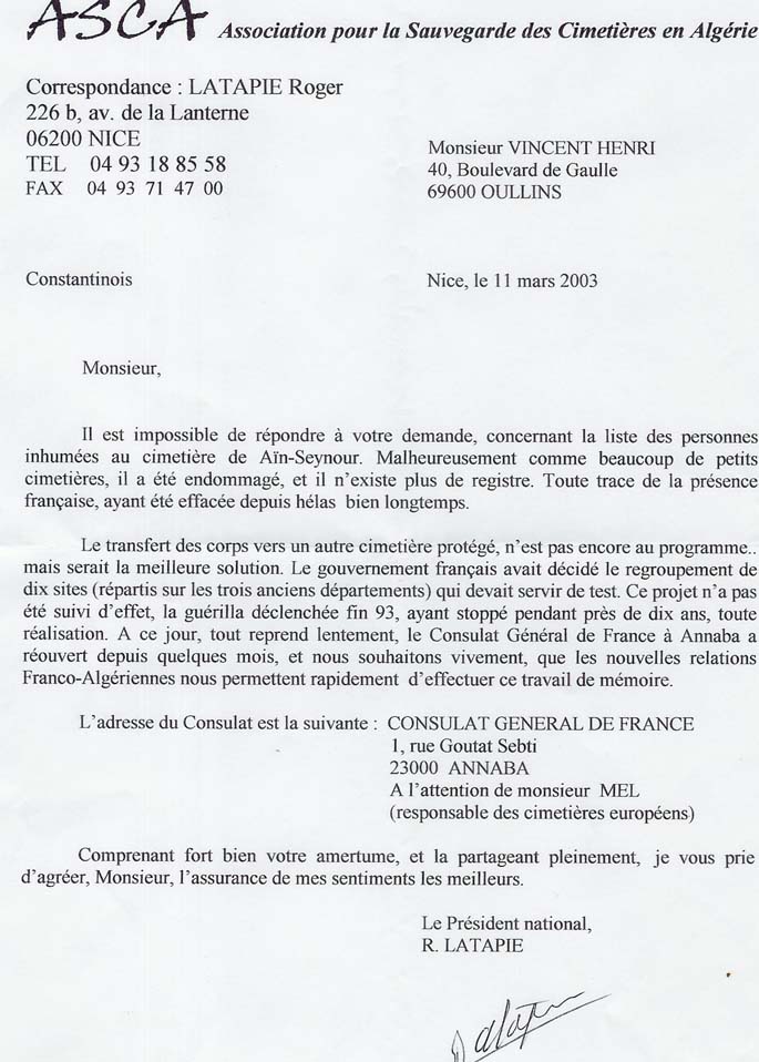 Adresses : Né à Aïn-Seynour, commune mixte de La Séfia, Dt