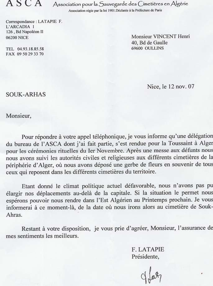 En 2006 elle rappelle que l’entretien des tombes incombe
