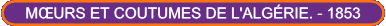 Titre : MŒURS ET COUTUMES DE L’ALGÉRIE. Paris 1853. Description : 394 pages, 541 ko. L’auteur : DAUMAS (Melchior-Joseph-Eugène), général de division, sénateur et écrivain, né le 4 septembre 1803, entra dans l’armée comme engagé volontaire en 1822. Nommé sous-lieutenant en 1827, il fut envoyé à l’école de Saumur. En 1835, il vint en Algérie, sous les ordres du maréchal Clauzel, fit les campagnes de Mascara et de Tlemcen. Il s’appliqua avec ardeur à l’étude de l’arabe et se distingua bientôt par une connaissance spéciale des mœurs algériennes. De 1837 à 1839, il résida en qualité de consul à Mascara, auprès de l’émir Abd-el-Kader. Le général de Lamoricière lui confia ensuite la direction des affaires arabes dans la province d’Oran qu’il commandait.