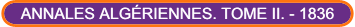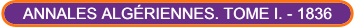 Il est impossible de concevoir une bibliothèque de livres sur l'Algérie ne comprenant pas les ANNALES ALGÉRIENNES. Cependant j'ai du faire preuve d'une grande obstination pour enfin pouvoir les lire et vous les présenter en mode texte. La Bibliothèque de France met en ligne la seconde édition (1845), mais le deuxième tome comporte un « bug ! » puisqu'après la page 90, nous constatons que les pages suivantes parlent d'ophtalmologie. Madame Anne-Marie Belkaid, la talentueuse Webmaster du site :