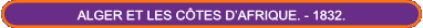 Titre : ALGER ET LES CÔTES D'AFRIQUE 1837. Description : 227 pages, 341 Ko. Auteur : A. DE FONTAINE DE RESBECQ. Éditions : GAUME frères, libraires à Paris 1832. Ce livre a été publié dans le rayon « Bibliothèque instructive et amusante ». C'est dire qu'il n'a pas été rédigé par un historien ! Il est destiné au « grand public » de l'époque, enthousiasmé par la fraîche conquête de l'Algérie : « Charles de France, qui avez rejoint votre père saint Louis, recevez le tribut de la reconnaissance que nous vous témoignons comme chrétiens, et voyez quelle fierté votre noble action a mise sur nos fronts. - L'Europe, affranchie d'un odieux tribut, bénit encore cette puissance dont il a plu à la Providence de vous dépouiller ; la mer, purgée de pirates, abaisse ses flots paisibles sous les voiles de la France. - L'humanité a triomphé de la barbarie, la croix est victorieuse du croissant. - Les déserts de l'Afrique retentiront des hymnes de foi. La religion, longtemps captive sur une terre désolée, vous proclame son libérateur ! »... Cet extrait donne une bonne idée du style général de l'ouvrage...