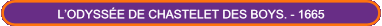Titre : L'ODYSSÉE DE CHASTELET DES BOYS. - 1665 Description : 109 pages. 211 ko. Auteur : CHASTELET DES BOYS. Ouvrage extrêmement rare, publié à La Flèche en 1665, et dont il n'existe semble-t-il que deux exemplaires. Voici une partie de l'ouvrage relative à Alger présenté par Berbrugger dans la revue Africaine. Berbrugger n'est pas tendre avec l'auteur : « Le style prétentieux et alambiqué de cet auteur se compliquait d'une orthographe aussi déréglée que son imagination et que nous avons dû rectifier pour que l'ouvrage devint compréhensible. Par le fond, la publication qu'on va lire fait naturellement suite aux récits d'Aranda sur la piraterie algérienne et sur l'esclavage chrétien ; elle comble donc une lacune assez importante dans cet ordre de faits. C'est un genre de mérite qui rendra sans doute le lecteur indulgent à l'égard des bizarreries de la forme.