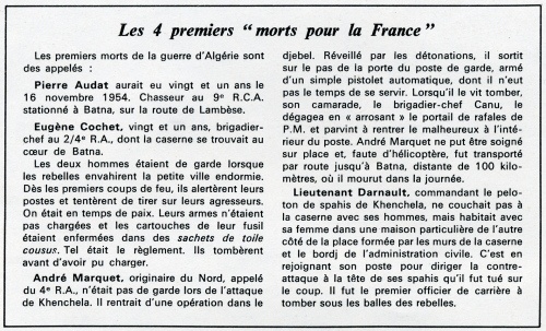 ...liste des 4 premiers militaires "morts pour le France" tombés sous les balles du FLN.