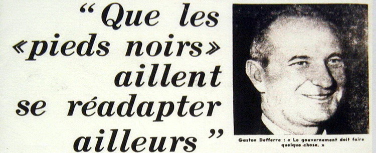 ...Le maire socialiste de la ville de Marseille ne fait pas dans la dentelle, il n'aime pas les pieds-noirs et ne cache pas ses sympathies comme toute la gauche et les gaullistes pour le FLN !