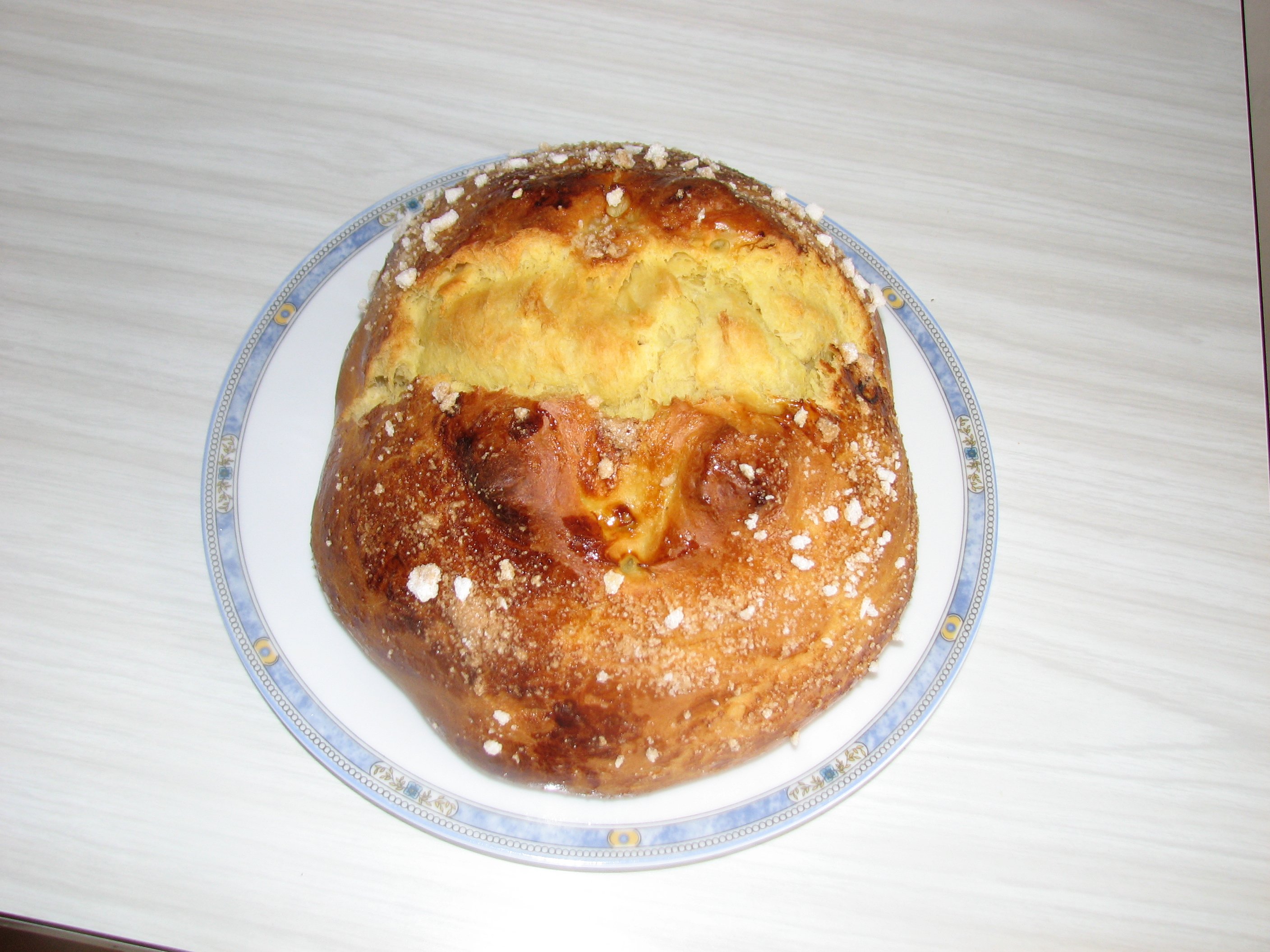 Préchauffer le four à 180°; enfourner pendant 10 min à 180° et 30 min  à 160°. Piquer la mouna au centre voir si la pâte est bien cuite.