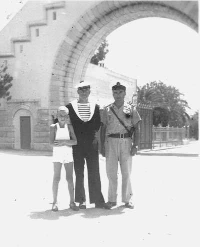 Je suis photographié avec un Gendarme maritime et le matelot Pierre qui l'été,