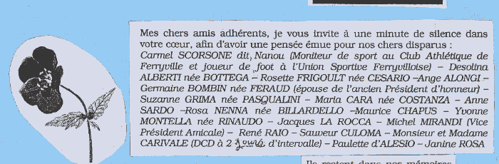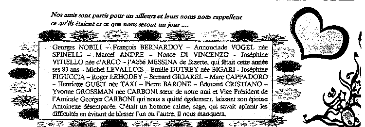 Les décès recueillis dans le bulletin de l'amicale des anciens de Tunisie à Toulon de Septembre 2002