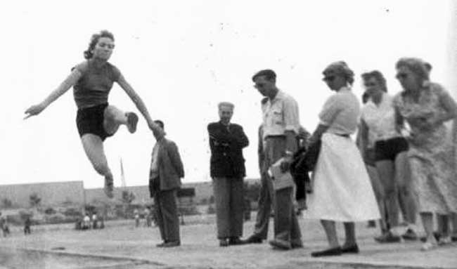 Championnats scolaires de Tunisie en 1956. Arlette Caillet est championne de saut en longueur et de saut en hauteur.