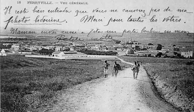 Une vue du début de Ferryville, prise de la colline de Sidi Yahia. Le chemin qui partait du boulevard Cambetta vers la caserne et le château d'eau est encore en terre
