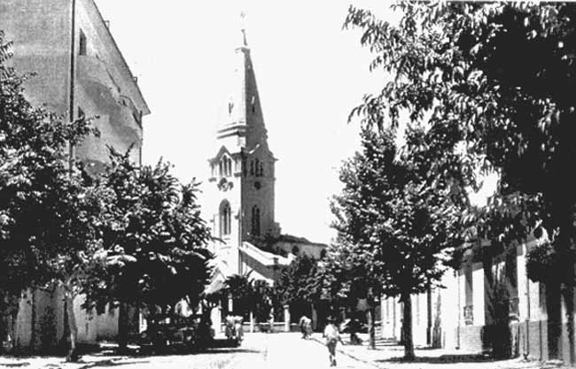 Les arcades de la rue Charles de Gaulle, l'Église et la colline de Sidi yahia.