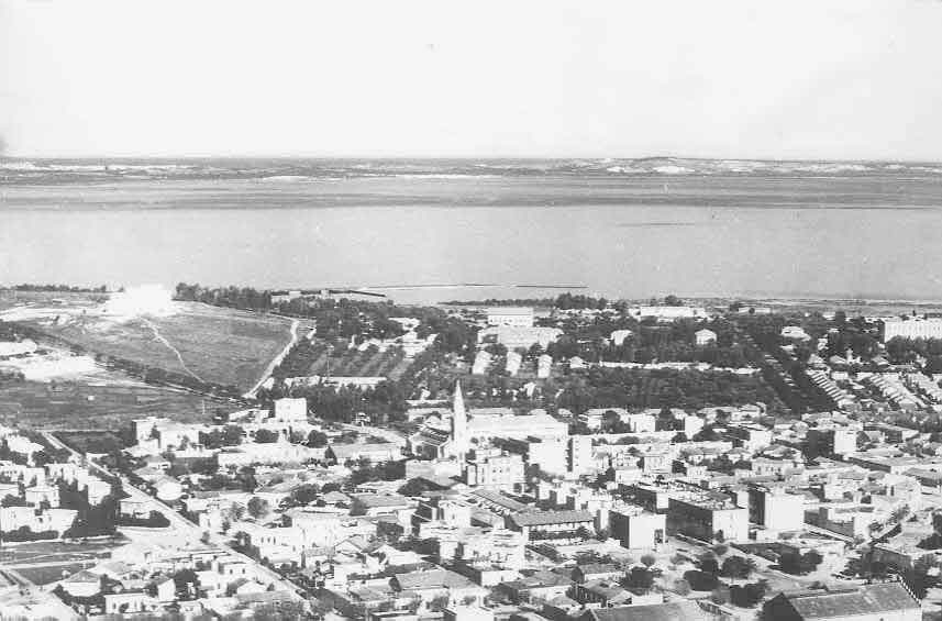 Vers 1955 - 1956 photo aérienne de Ferryville en direction du lac et Guengla