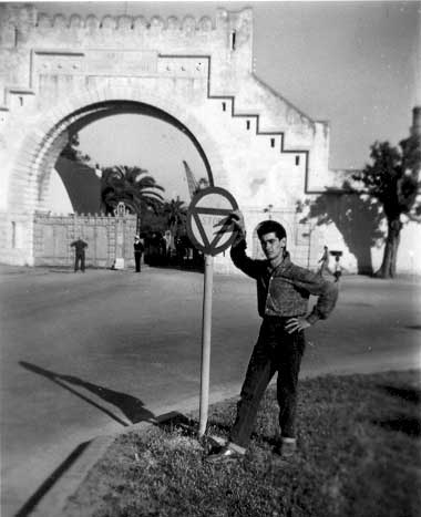 1945-Ma soeur Marie Thérèse devant le portail de notre jardin du Temporaire1 En arrière le Bld Carnot et le stade de la marine