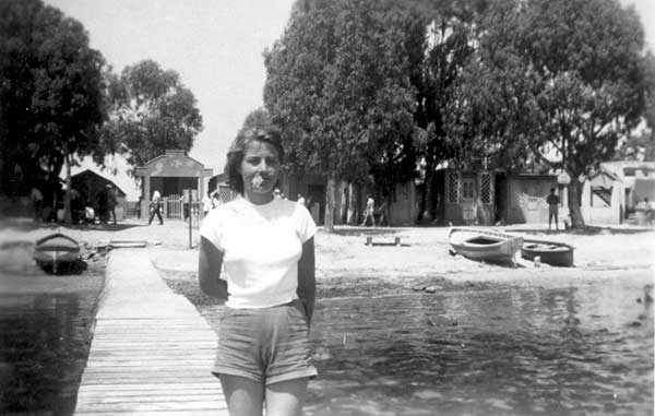 1957-Monique Vergin sur le ponton de la plage Rondeau