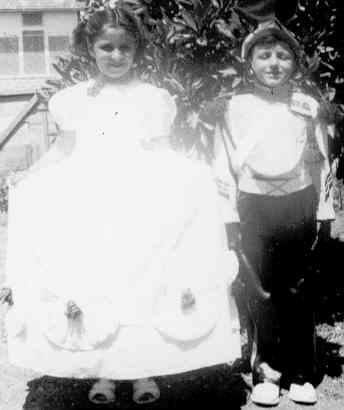 Vous pouvez également lire les nombreux messages que laissent les visiteurs du site sur le livre d'or où vous pouvez aussi y écrire votre message. 15 avril 2003 Recherche : Sur la photo ci-dessous prise en 1948 ou 1949 lors de la fête des écoles de Ferryville, pouvez-vous identifier le jeune garçon qui pose avec Arlette Muscat. Dans l'affirmatif vous pouvez communiquer ce nom à Arlette à : ![]()