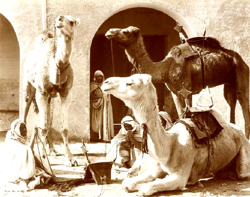 | actuel | 15 septembre 2008 à 16:50 | 842 × 666 (156 kio) | Gilles DUPONT (discussion | contributions) | Biskra - Méharas chameaux coureurs - circa 1900 Marius MAURE |